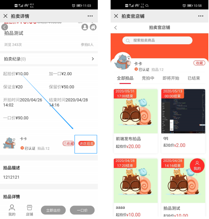 拍卖官店铺管理入口