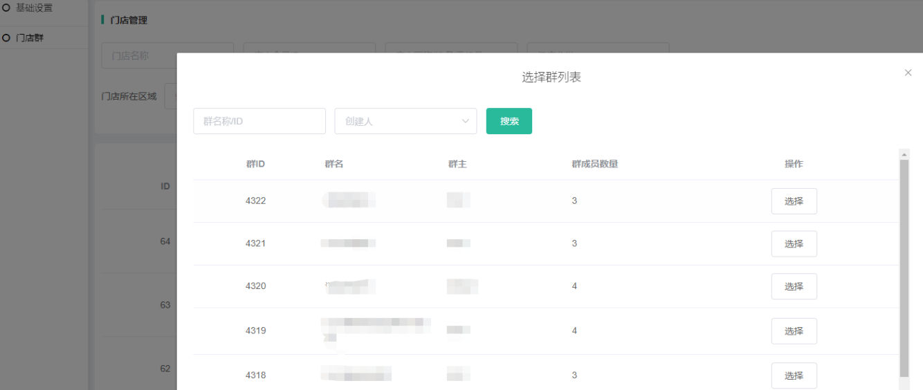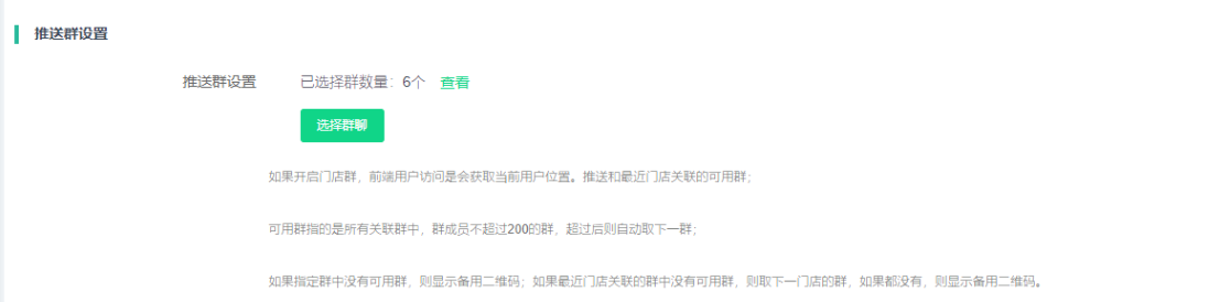 1、基础设置开启门店后,只有开启了参与状态和有关联群的门店才会在前端加群页显示